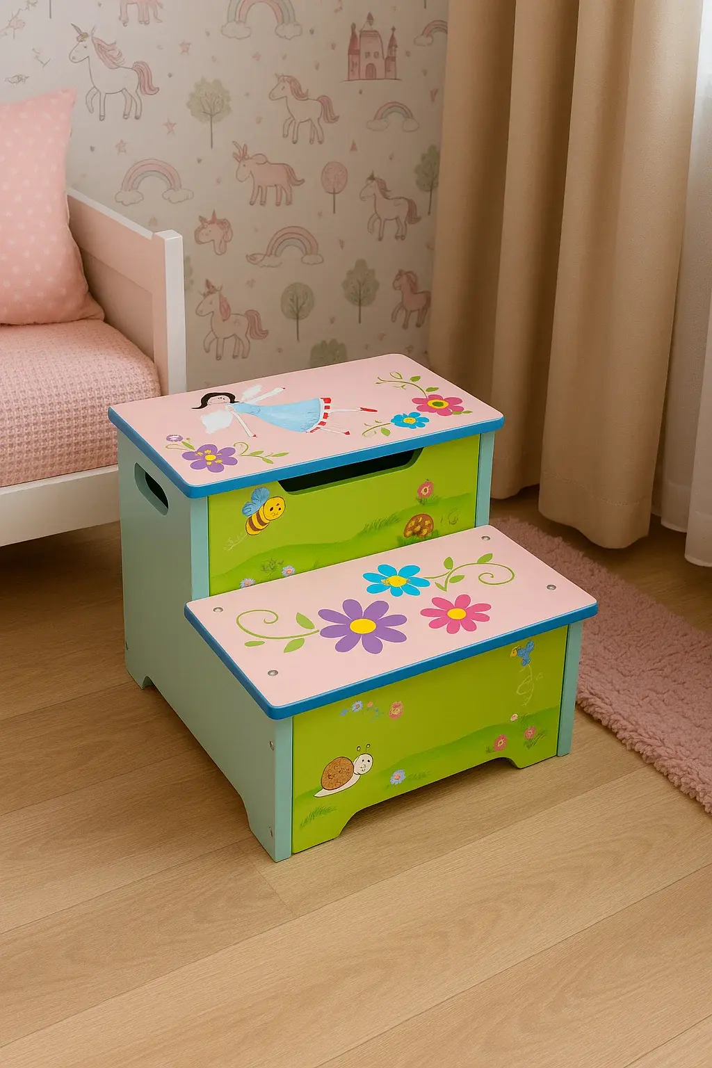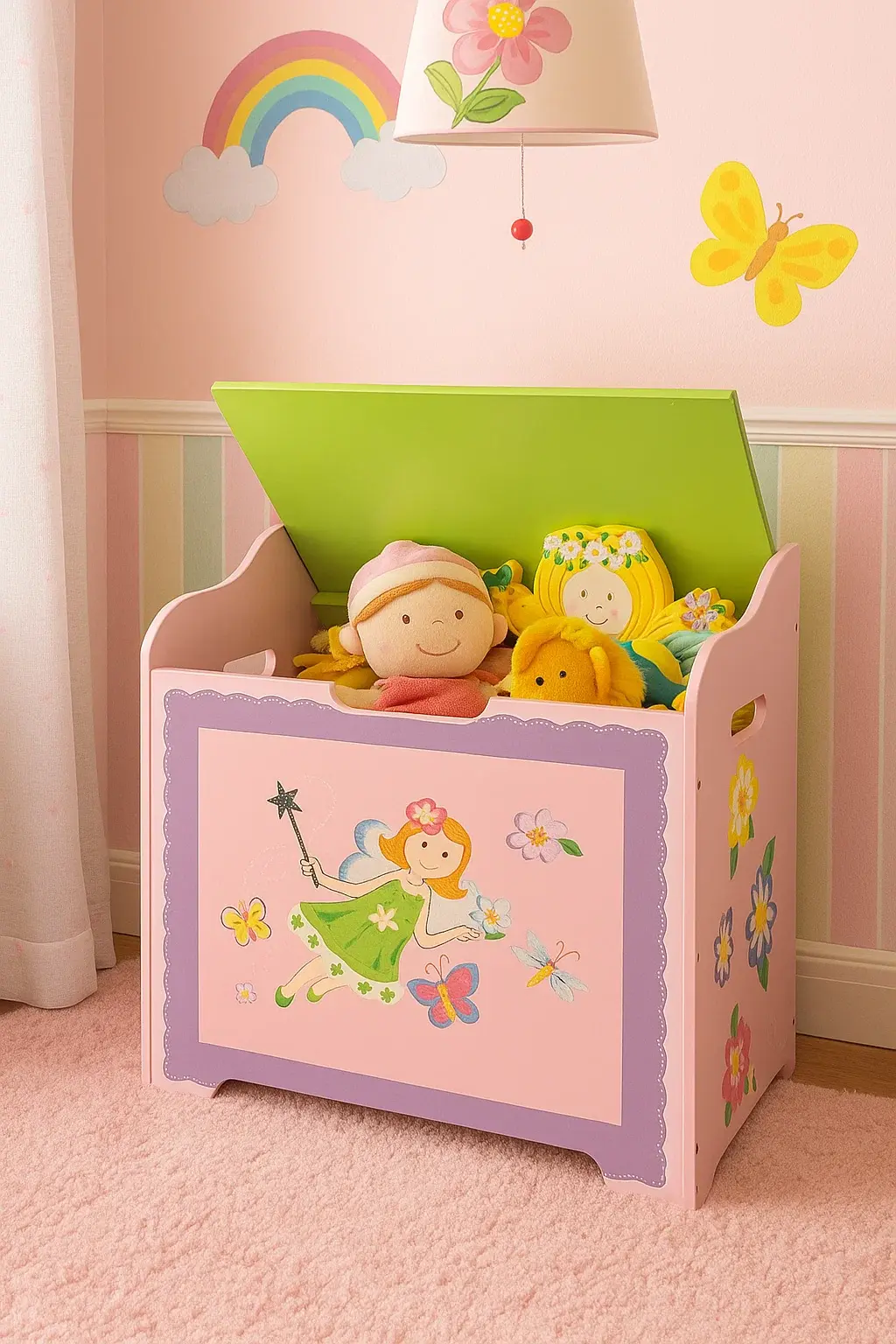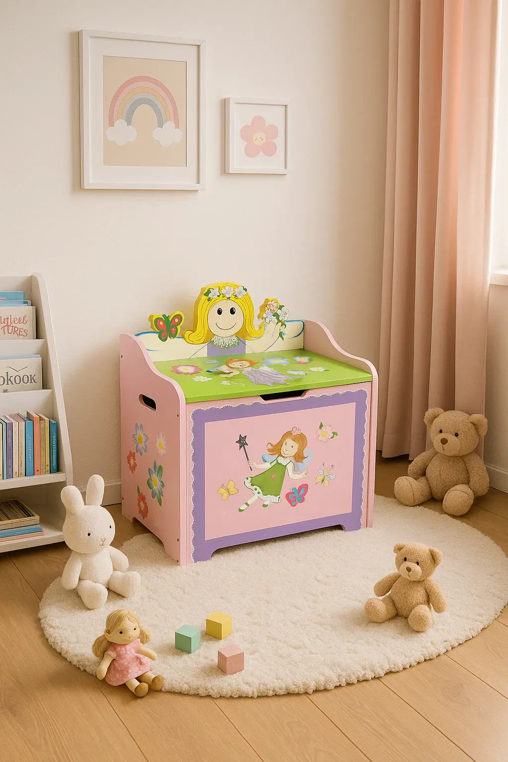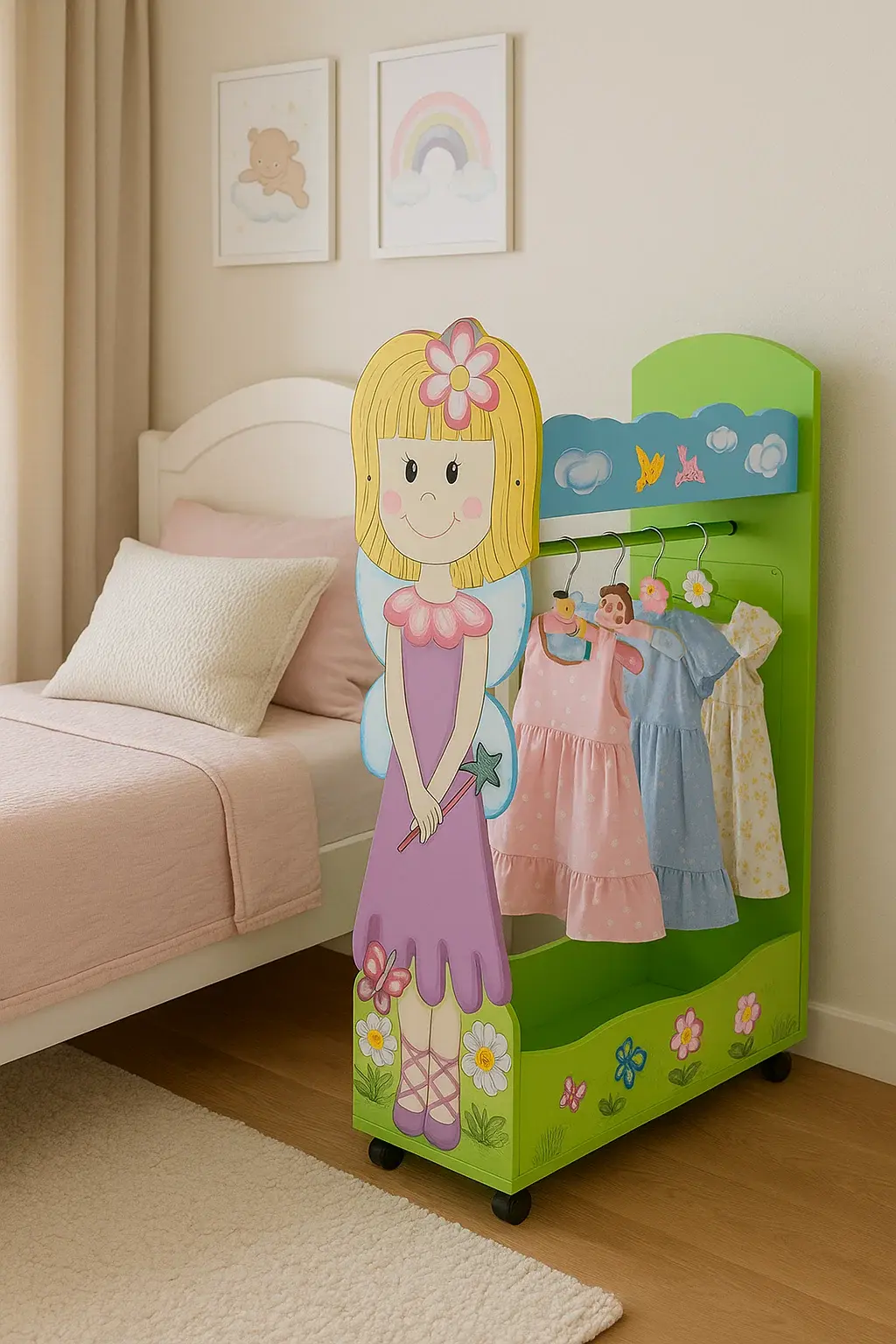 Яркая и удобная книжная полка специально создана для детской комнаты. Благодаря низкой высоте ребёнок может сам доставать и убирать книги или игрушки, что развивает аккуратность и самостоятельность. Полка украшена красочными рисунками феи, бабочек и цветов, которые создают сказочную атмосферу.
