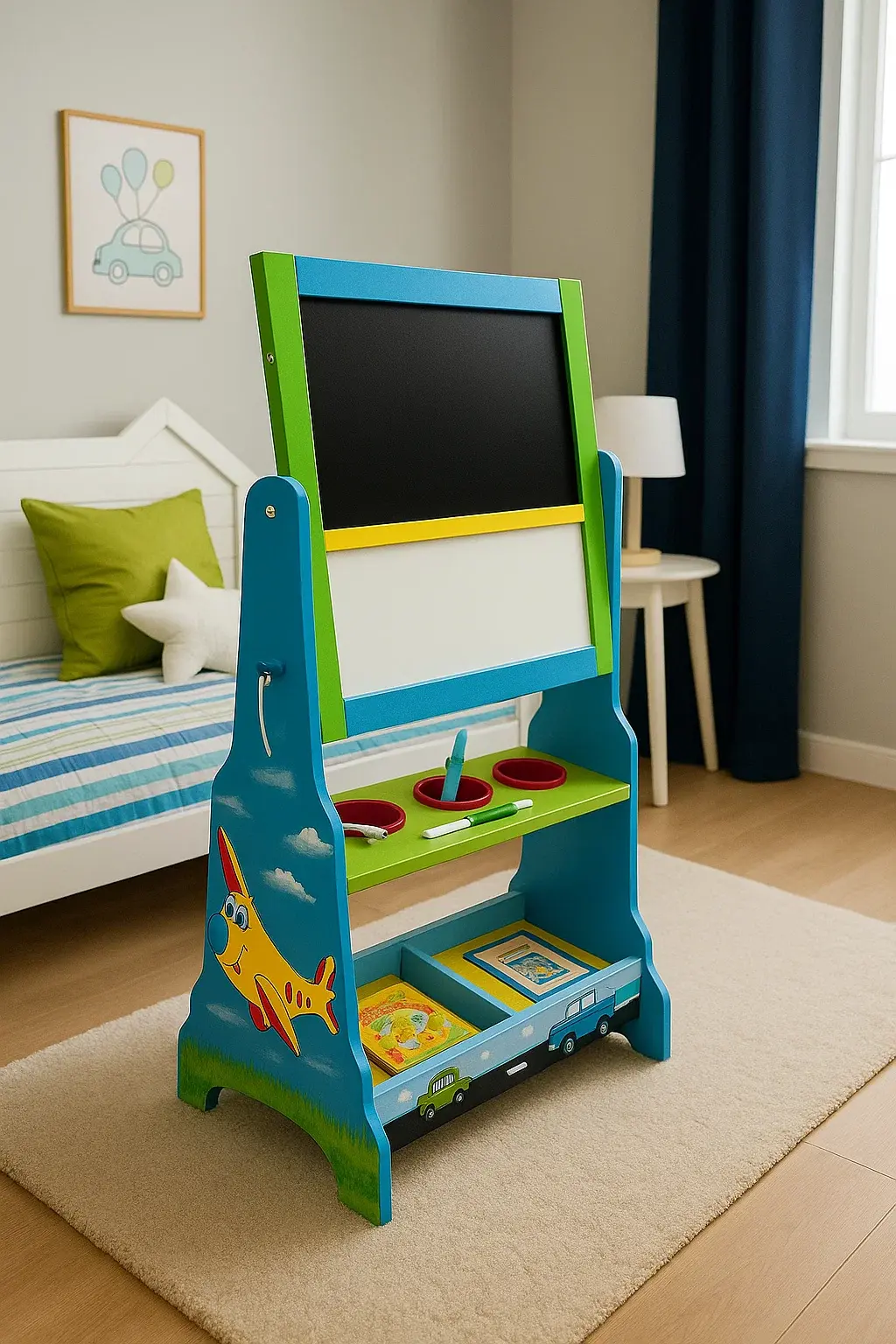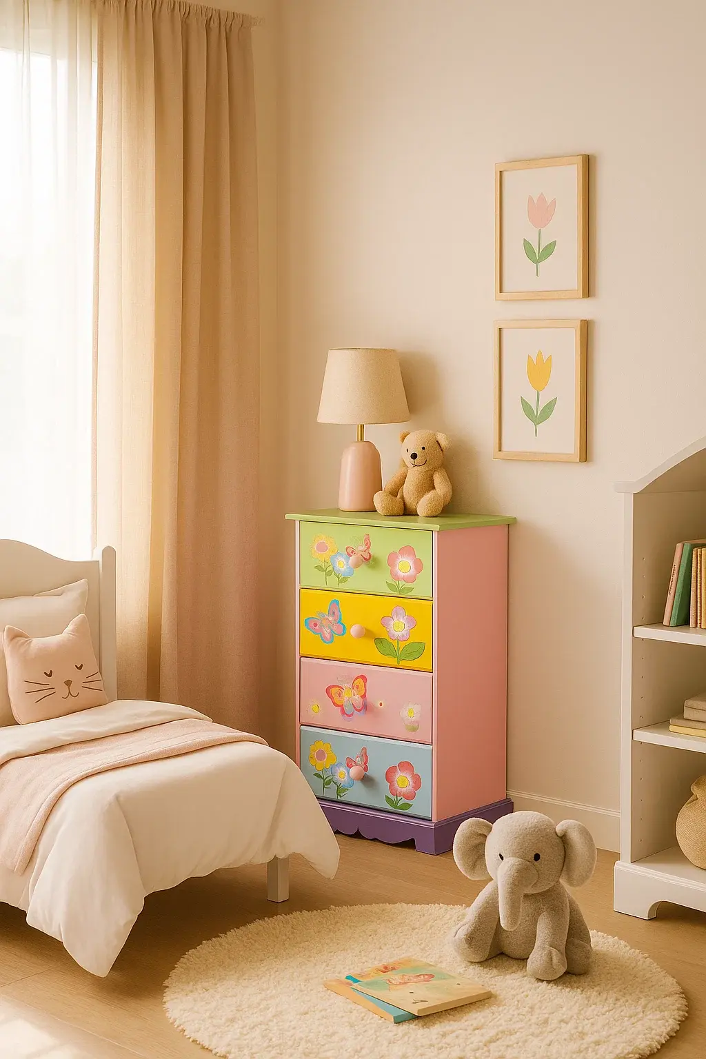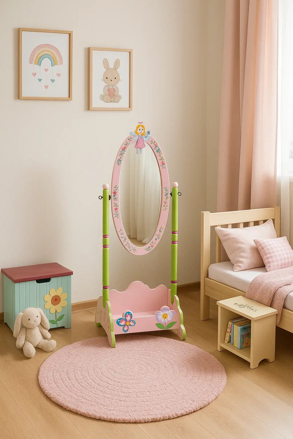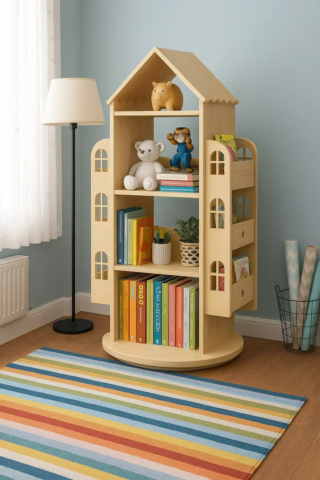 Яркая и удобная книжная полка специально создана для детской комнаты. Благодаря низкой высоте ребёнок может сам доставать и убирать книги или игрушки, что развивает аккуратность и самостоятельность. Полка украшена красочными рисунками феи, бабочек и цветов, которые создают сказочную атмосферу.